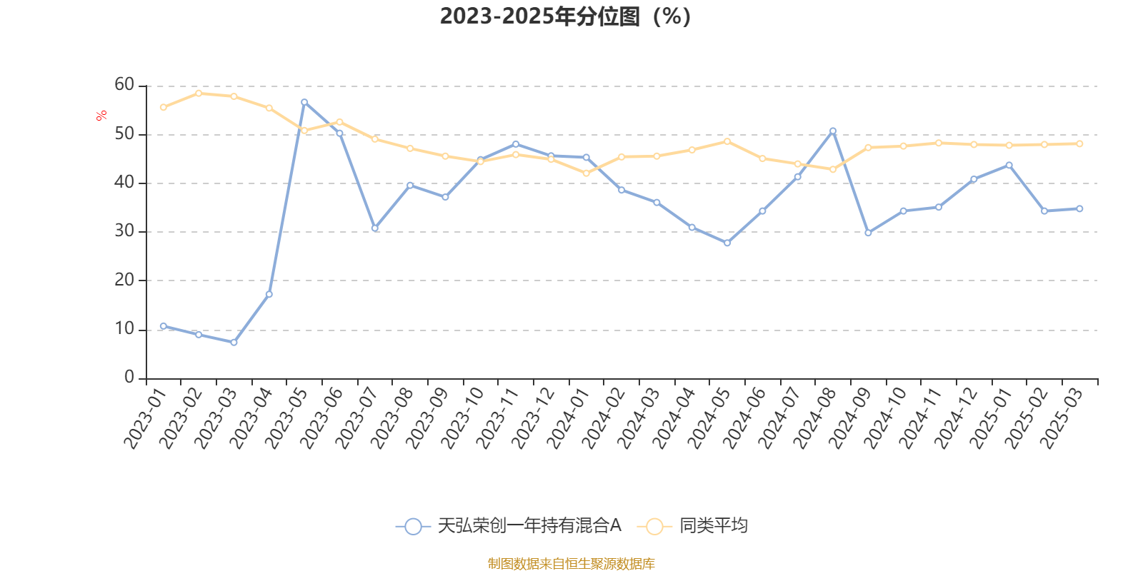 通过所选区间该基金净值增长率分位图,可以观察该基金与同类基金业绩比较情况。图为坐标原点到区间内某时点的净值增长率在同类基金中的分位数。