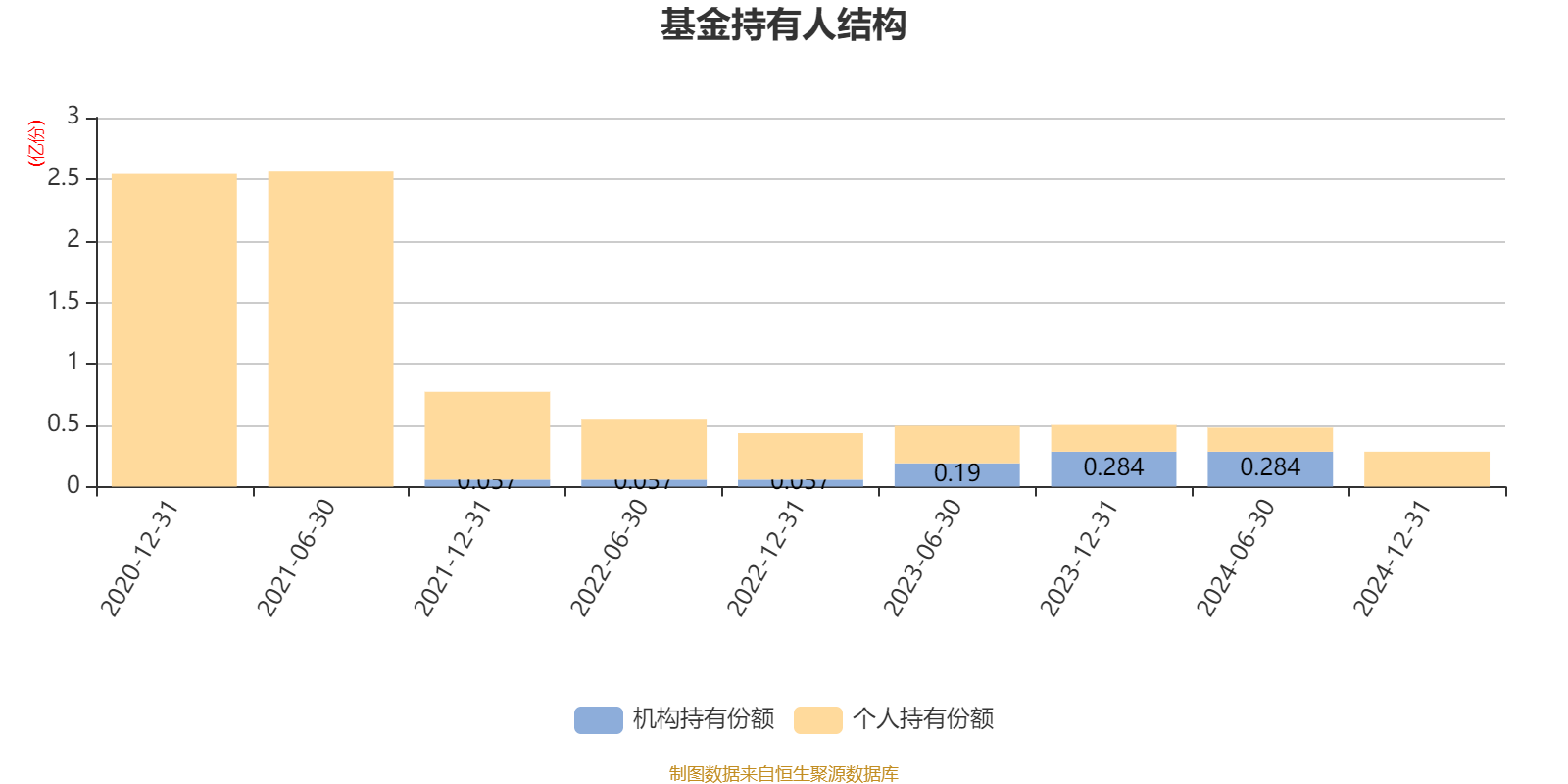 截至2024年12月31日,基金持有人共计1454户,合计持有2841.02万份。其中管理人员工持有9.93万份,占比0.35%,个人投资者占比100.00%。