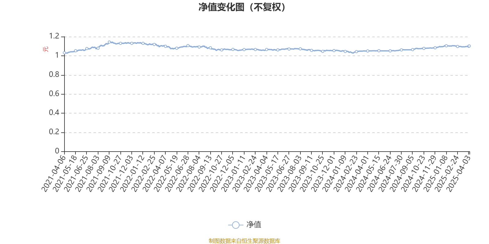 该基金属于偏债混合型基金。截至4月3日,单位净值为1.102元。基金经理是刘嗣兴,目前管理6只基金近一年均为正收益。其中,截至4月3日,天弘荣创一年持有混合A近一年复权单位净值增长率最高,达4.92%;天弘弘利债券A最低,为3.64%。